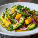 A refreshing and vibrant salad featuring creamy avocado and sweet mango, drizzled with a zesty lime dressing.
