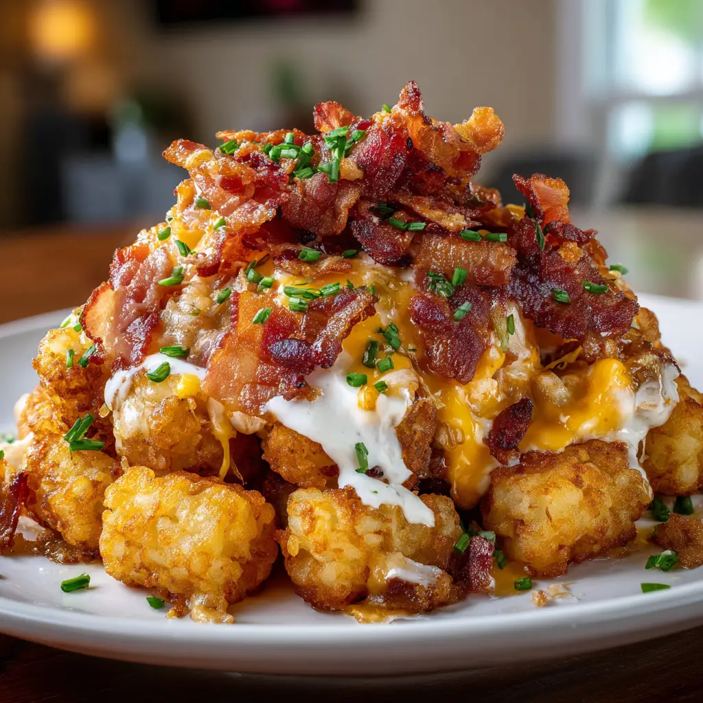 A delicious and hearty casserole combining the flavors of bacon cheeseburgers and crispy tater tots.