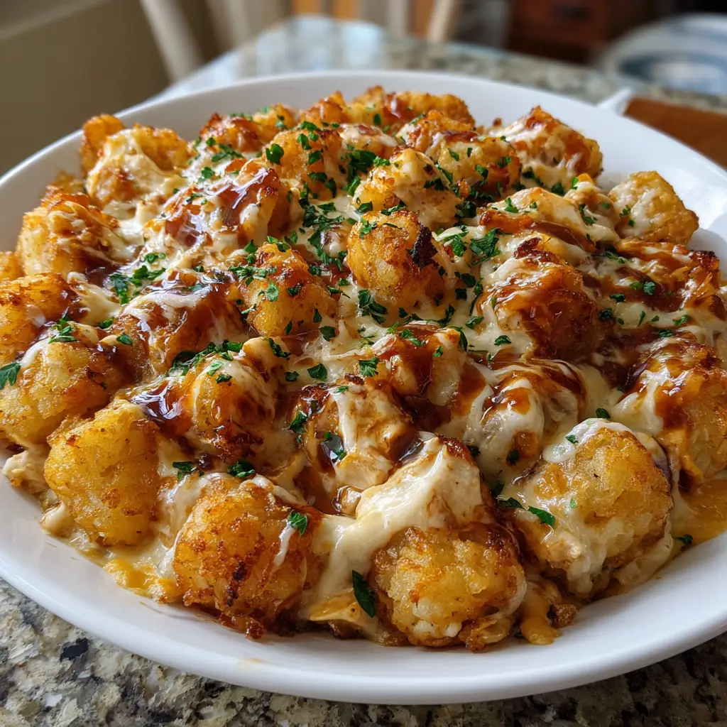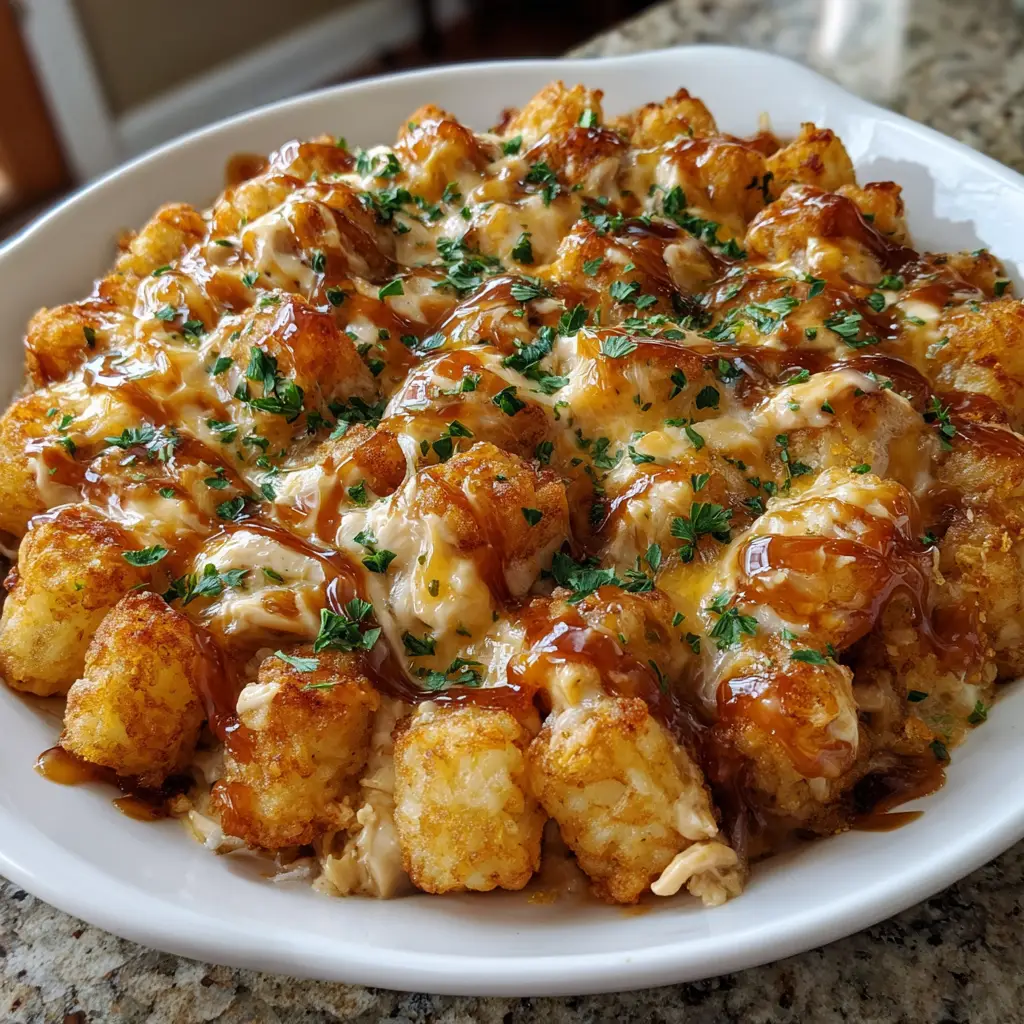 A delicious and hearty BBQ Chicken Tater Tot Casserole that combines tender chicken, tangy BBQ sauce, and crispy tater tots for a perfect family meal.
