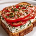 This tomato sandwich holds a special place in the heart of summertime meals. It’s a perfect blend of simplicity and sophistication, offering a lush taste profile that pleases and delights. The way the creamy spread envelops the fresh tomatoes creates an inviting combination of flavors that comforts and satisfies. Each component tells a story: the bread’s gentle crunch, the creaminess that dances across your palate, and the juicy tomatoes that promise an explosion of freshness.