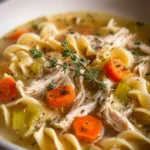 A comforting and hearty turkey noodle soup filled with tender turkey, fresh vegetables, and chewy egg noodles, perfect for cold days and family gatherings.