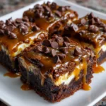 A rich and indulgent dessert combining layers of brownie, cheesecake, and caramel for a heavenly treat.
