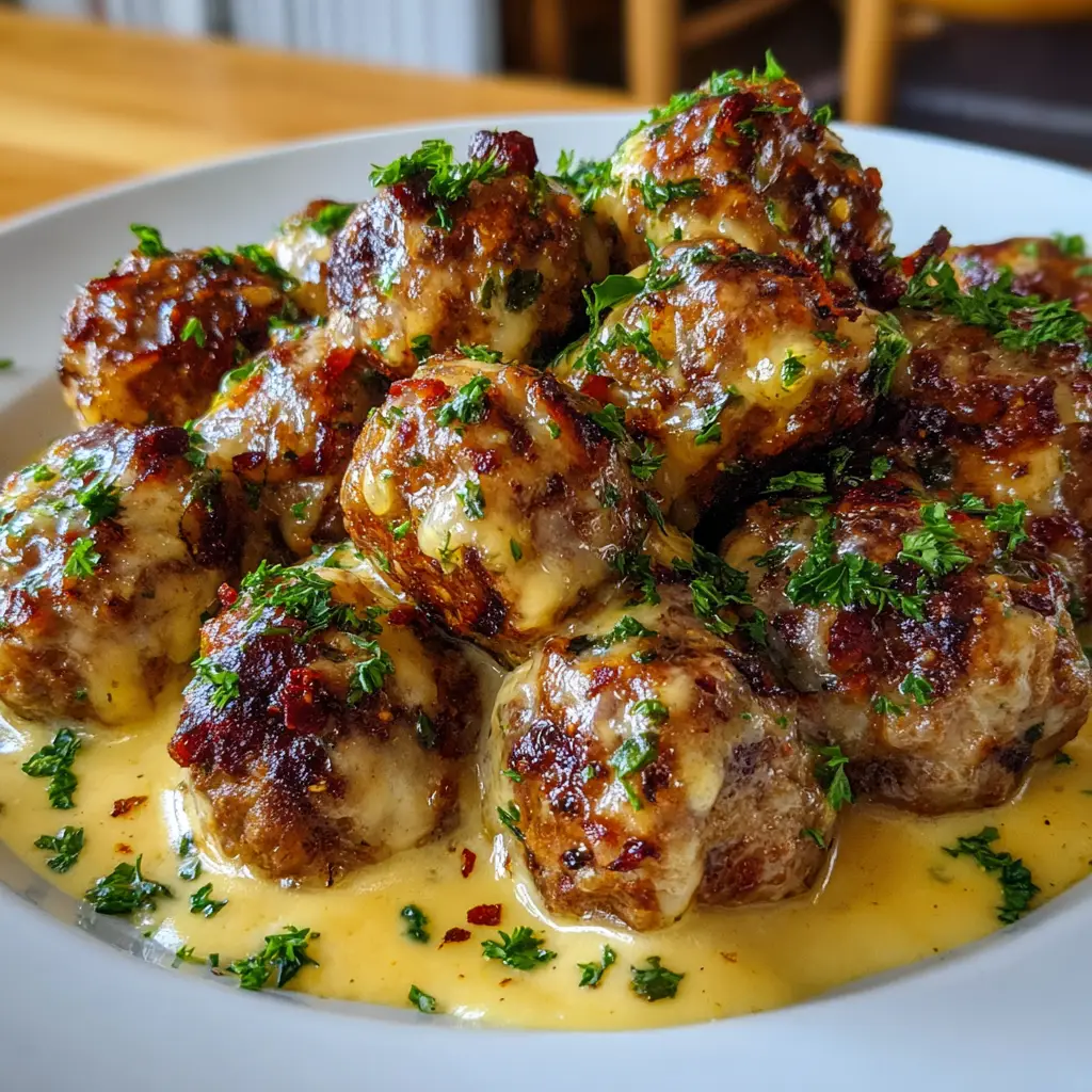 Delicious meatballs infused with the rich flavors of French onion soup and topped with melted cheese.