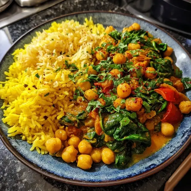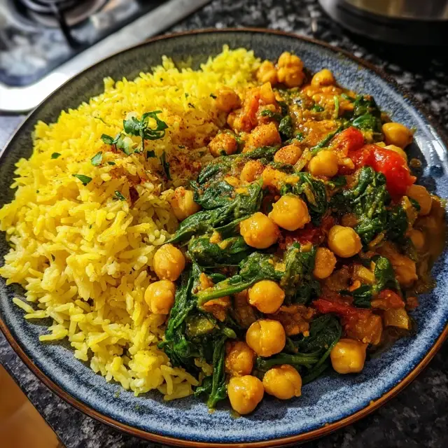 Introduction to Chickpea & Spinach Curry with Turmeric Rice