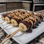 Time to dip! Hold each banana by the stick and dip it into the melted chocolate. Make sure to coat it evenly, letting any excess chocolate drip off. If you want to add sprinkles or chopped nuts, now’s the time! Just sprinkle them on before the chocolate sets.
