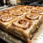 While the bars are baking, it’s time to whip up the frosting. In a bowl, mix together the powdered sugar, cream cheese, and milk until smooth. This creamy topping is what takes your Cinnamon Roll Bliss Bars from good to absolutely divine!