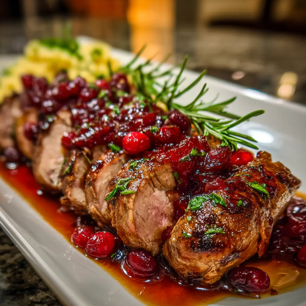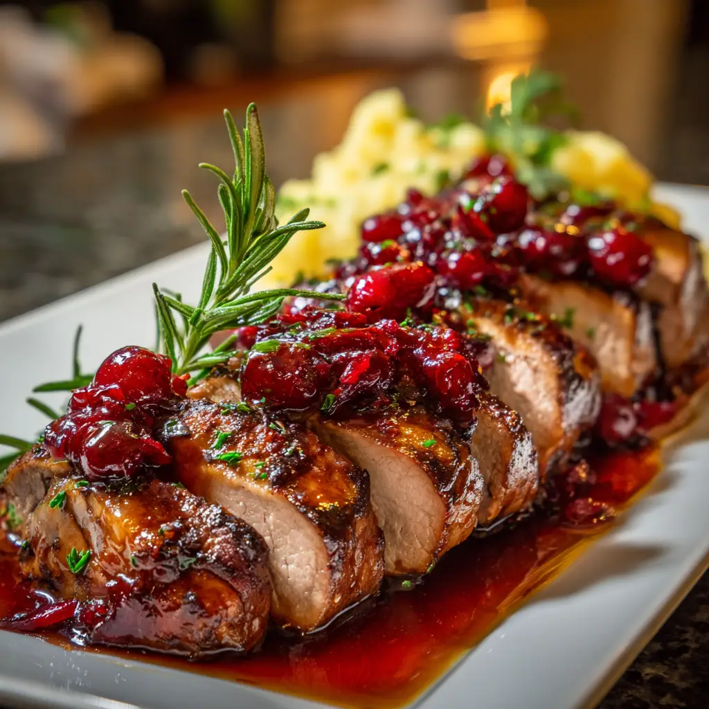 Keywords: Cranberry Glazed Pork Tenderloin, Pork Tenderloin Recipe, Holiday Dinner, Easy Pork Recipe