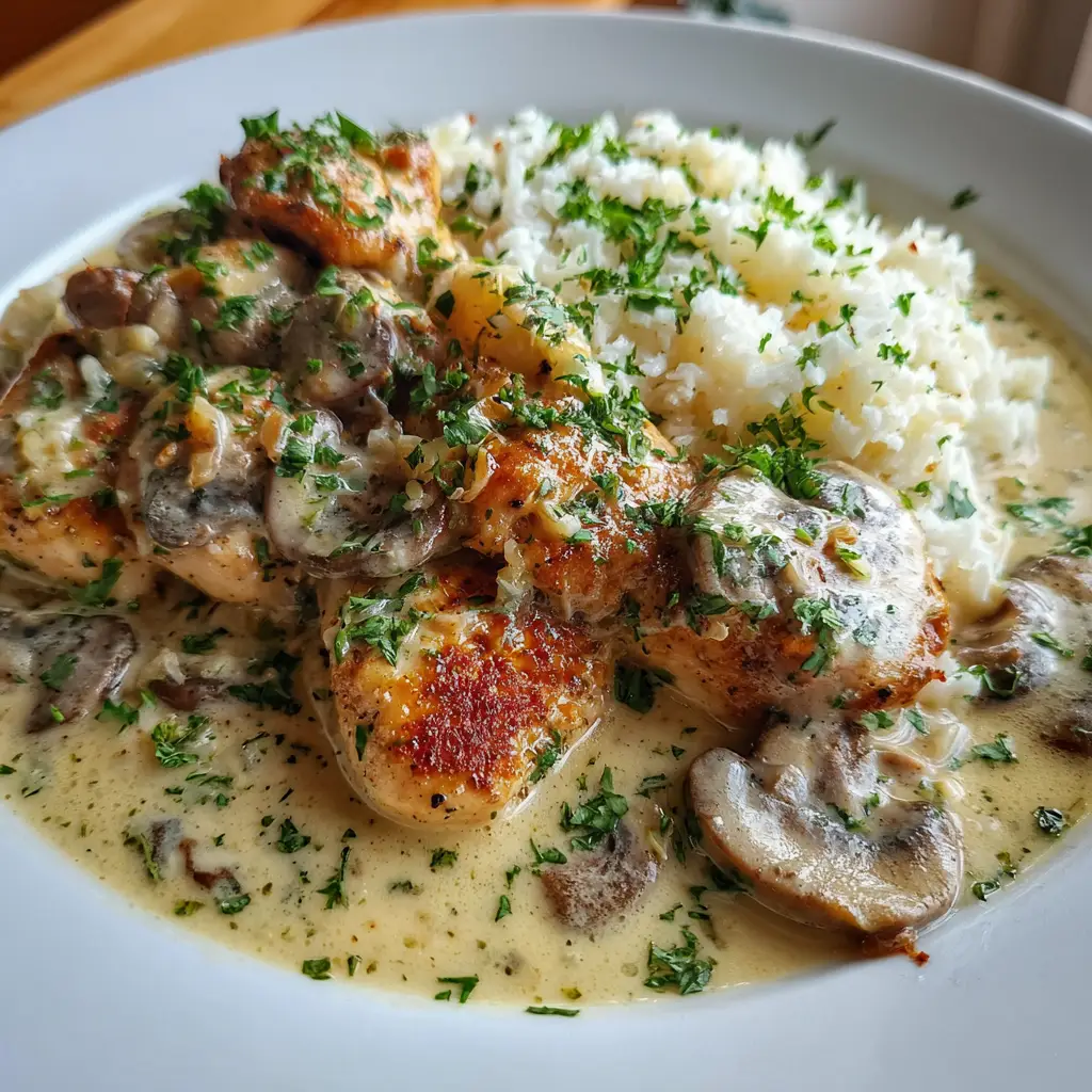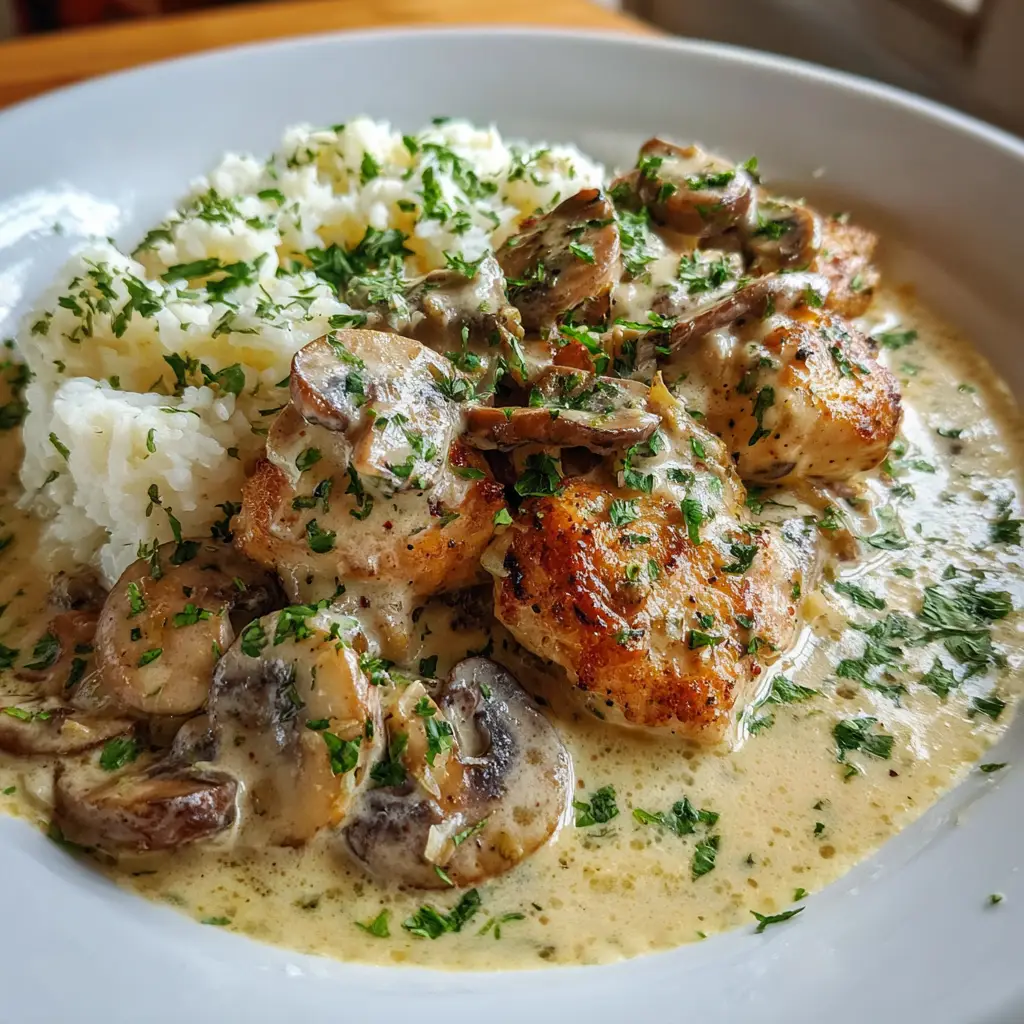 Keywords: Creamy Mushroom Chicken, Chicken Recipe, Dinner Recipe, Comfort Food