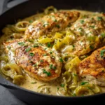 Now it’s time to return the chicken to the skillet. Nestle it into the creamy sauce and let it simmer for an additional 10-15 minutes. This allows the chicken to soak up all that delicious flavor while the sauce thickens beautifully.