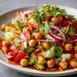 A refreshing and flavorful salad featuring crunchy chickpeas, vibrant vegetables, and a zesty Thai-inspired dressing.