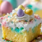 A delightful Easter Poke Cake with moist layers, creamy coconut goodness, and vibrant pastel colors, perfect for celebrating the season.