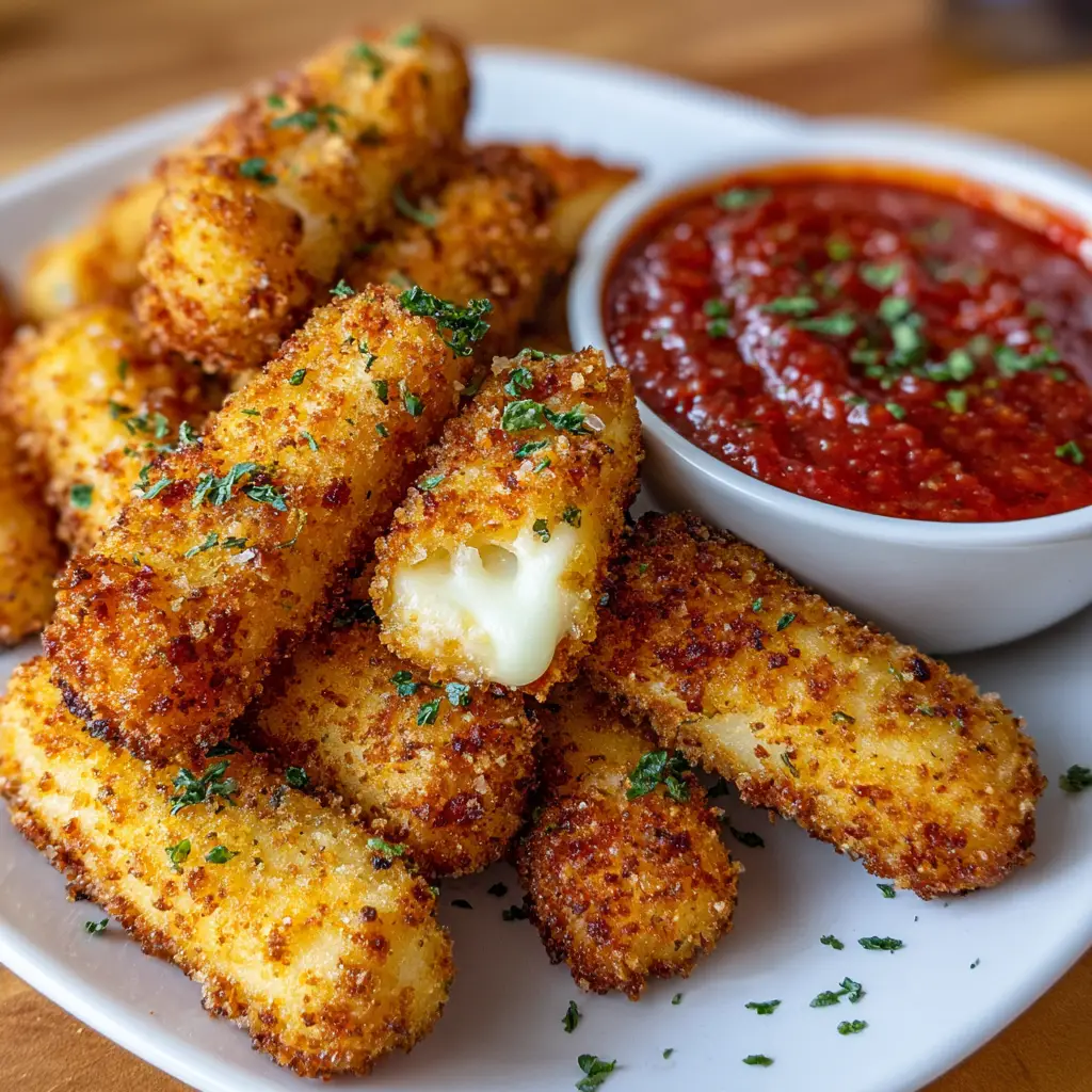 Delicious and crispy mozzarella sticks made effortlessly in an air fryer, perfect for quick snacks or appetizers.