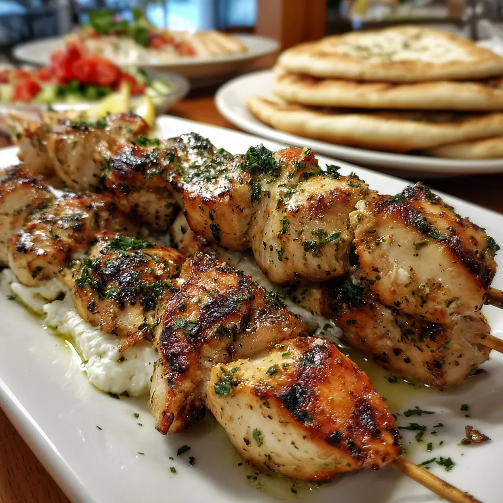 Keywords: Greek Chicken Souvlaki, Pita Bread, Greek Cuisine, Grilled Chicken