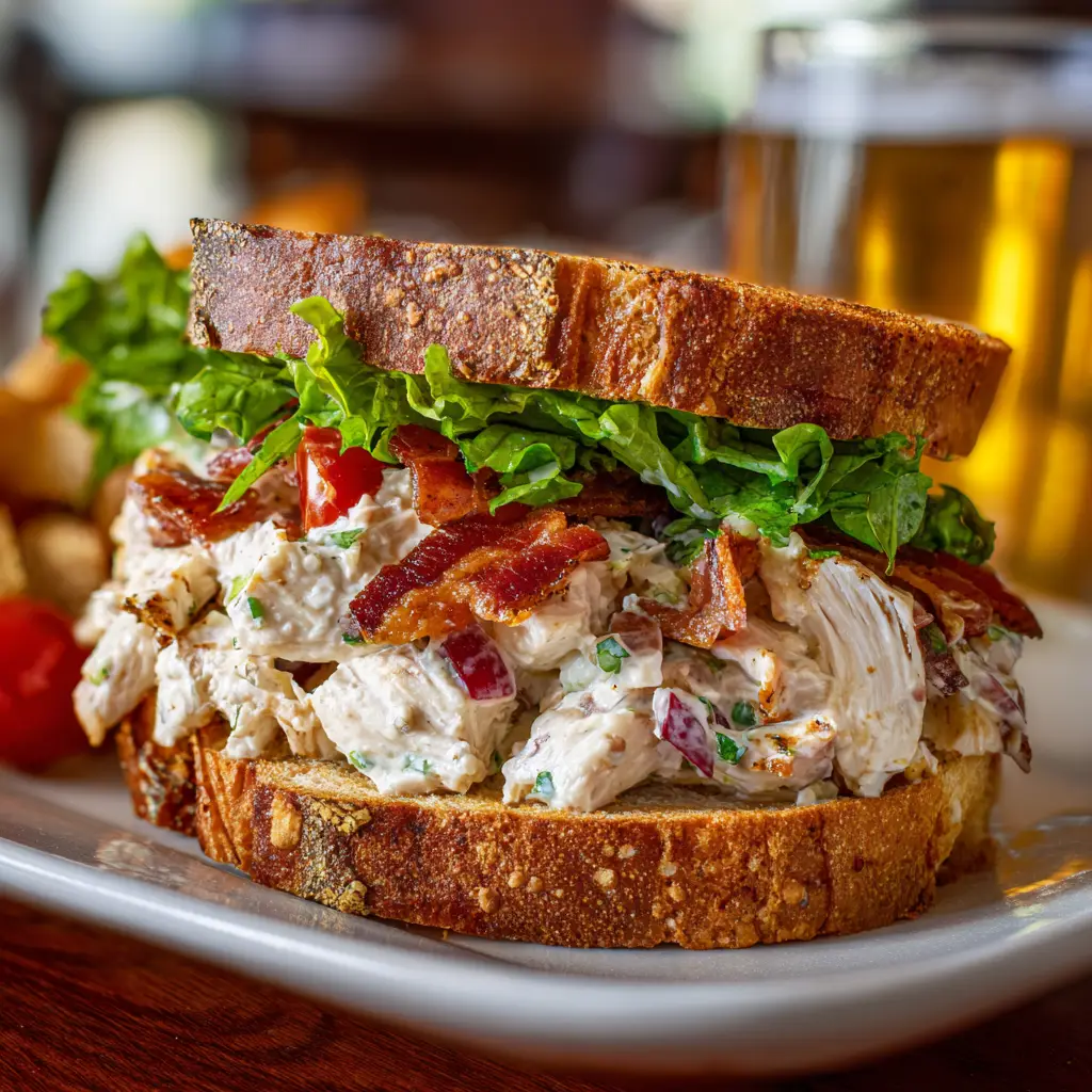 Fresh fruit, veggie sticks, or a light salad pair wonderfully with the sandwich. They add a refreshing contrast to the creamy chicken salad and make for a balanced meal.