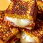 As you savor this creation, the subtle sweetness of the bread perfectly complements the salty notes of the cheese. The crunch of the crust mingles with the smooth, melty interior, offering a symphony of sensations that is hard to resist. You can almost hear the satisfying sizzle as the sandwich toasts in the pan, infusing your space with an irresistible warmth that hints at the incredible experience awaiting you. This isn’t just a simple meal; it’s a warm embrace that wraps around you, transforming an ordinary day into something special.