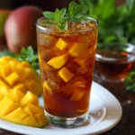 A refreshing summer drink combining the flavors of mango and mint with iced tea.