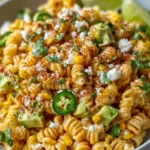A vibrant and flavorful fusion of Mexican street corn and creamy pasta salad, perfect for summer gatherings.