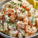 A creamy shrimp salad that captures the essence of New York delis with flavors of lemon, Dijon mustard, and crunchy celery.