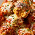 Savory oven-baked meatballs with a delightful crust, served with marinara sauce and melted cheese.