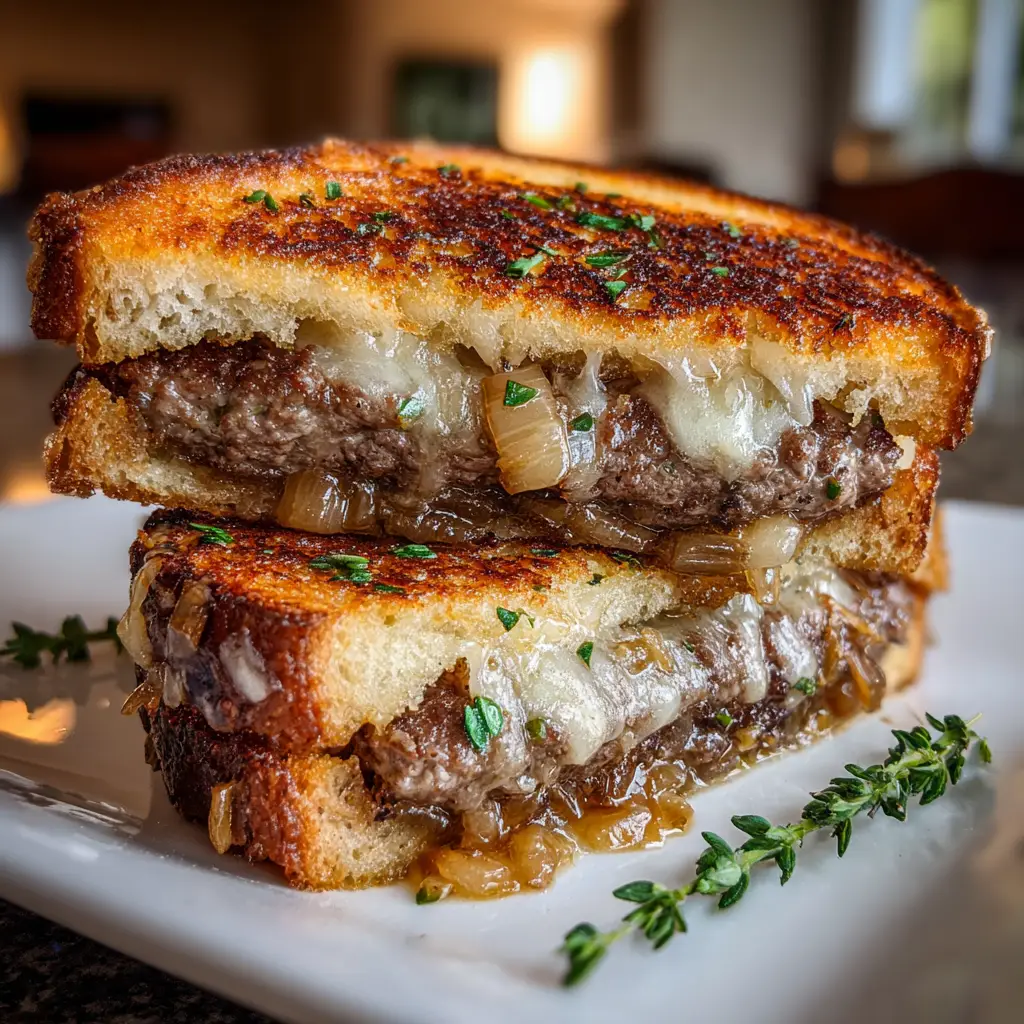 Keywords: Patty Melt, Garlic Herb, Toasted Sourdough, Sandwich, Comfort Food