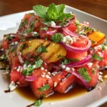 Creating this Peach Watermelon Salad Recipe is like capturing summer in a bowl. The vibrant colors and refreshing flavors bring joy to any meal, making it a delightful addition to your table. I love how it effortlessly combines simplicity with elegance, perfect for busy days or special gatherings. Each bite is a reminder of sunny afternoons and laughter shared with loved ones. Whether you serve it at a picnic or enjoy it as a light lunch, this salad is sure to brighten your day. So, grab those juicy peaches and sweet watermelon, and let the culinary magic begin!