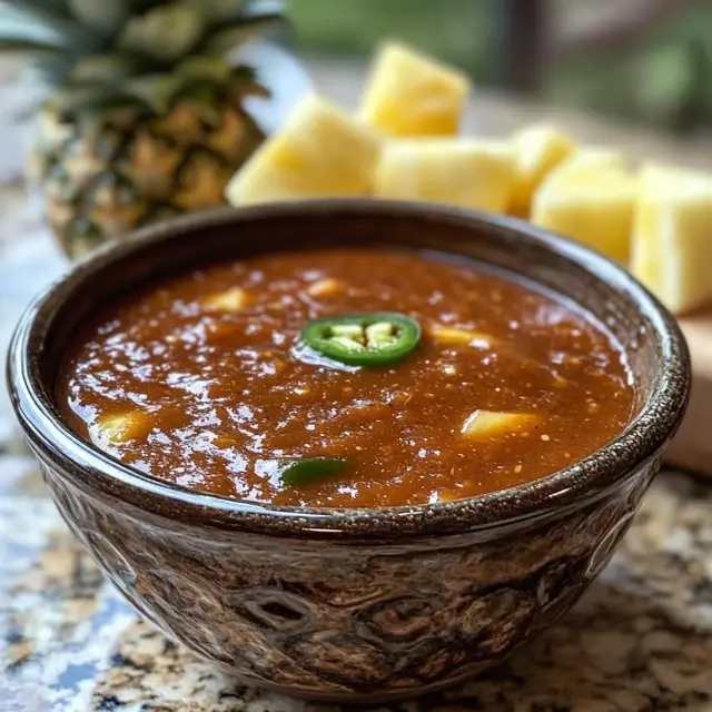 A sweet and spicy BBQ sauce that combines the tropical flavor of pineapple with the heat of jalapeños, perfect for grilling and marinating.