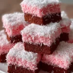 Delightful bars with a rich chocolate base and a whimsical pink coconut topping, perfect for any celebration.