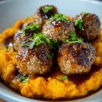Store any leftovers in an airtight container in the refrigerator for up to 4 days. For longer storage, freeze the meatballs and mashed sweet potatoes separately. In the freezer, they can last up to three months. Reheat gently on the stovetop over low heat to preserve moisture, or microwave in short intervals, stirring occasionally until warmed through.