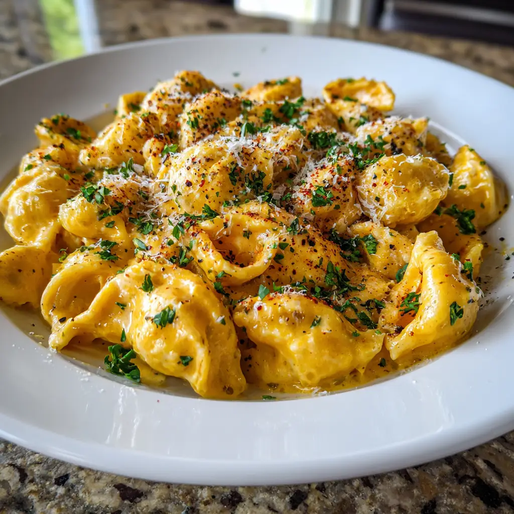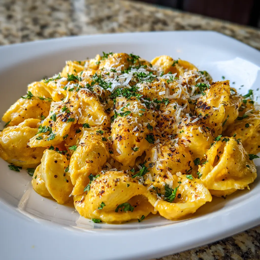 A creamy and comforting pumpkin Alfredo pasta dish perfect for fall.