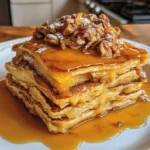 Once your pancakes are cooked, stack them high on a plate. Serve them warm with a drizzle of maple syrup, a sprinkle of powdered sugar, or even a dollop of whipped cream. You can also add toppings like chopped nuts or chocolate chips for an extra treat. Enjoy every bite of these delightful Pumpkin Pie Pancakes, and watch your family smile with joy!