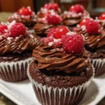 - Top each cupcake with chocolate frosting and garnish with additional raspberries if desired.