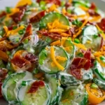 The sun shines brightly, casting a gentle warmth over the garden where crisp cucumbers sway softly in the breeze. Their vibrant green skins glisten, hinting at the crunchiness that lies within. As you slice through, the sharp, fresh scent wafts up, invigorating your senses and making your mouth water in anticipation. Each bite of the cool cucumber reveals a refreshing burst of flavor, a perfect canvas for a medley of colorful ingredients. Pair this with the smooth, herb-infused richness of ranch dressing, and you have yourself a delightful dish that dances on your tongue—a Refreshing Cucumber Ranch Crack Salad that sings of summer picnics, backyard barbecues, and gatherings filled with laughter and joy.