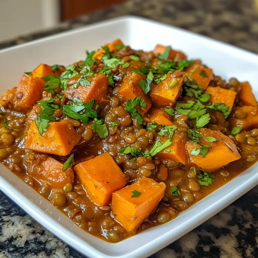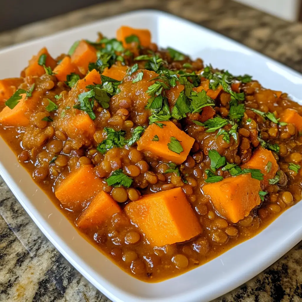 A hearty and flavorful stew made with spiced lentils and sweet potatoes, perfect for a comforting meal.