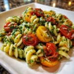 A refreshing and flavorful pasta salad featuring spinach pesto and roasted cherry tomatoes, perfect for a light meal or side dish.