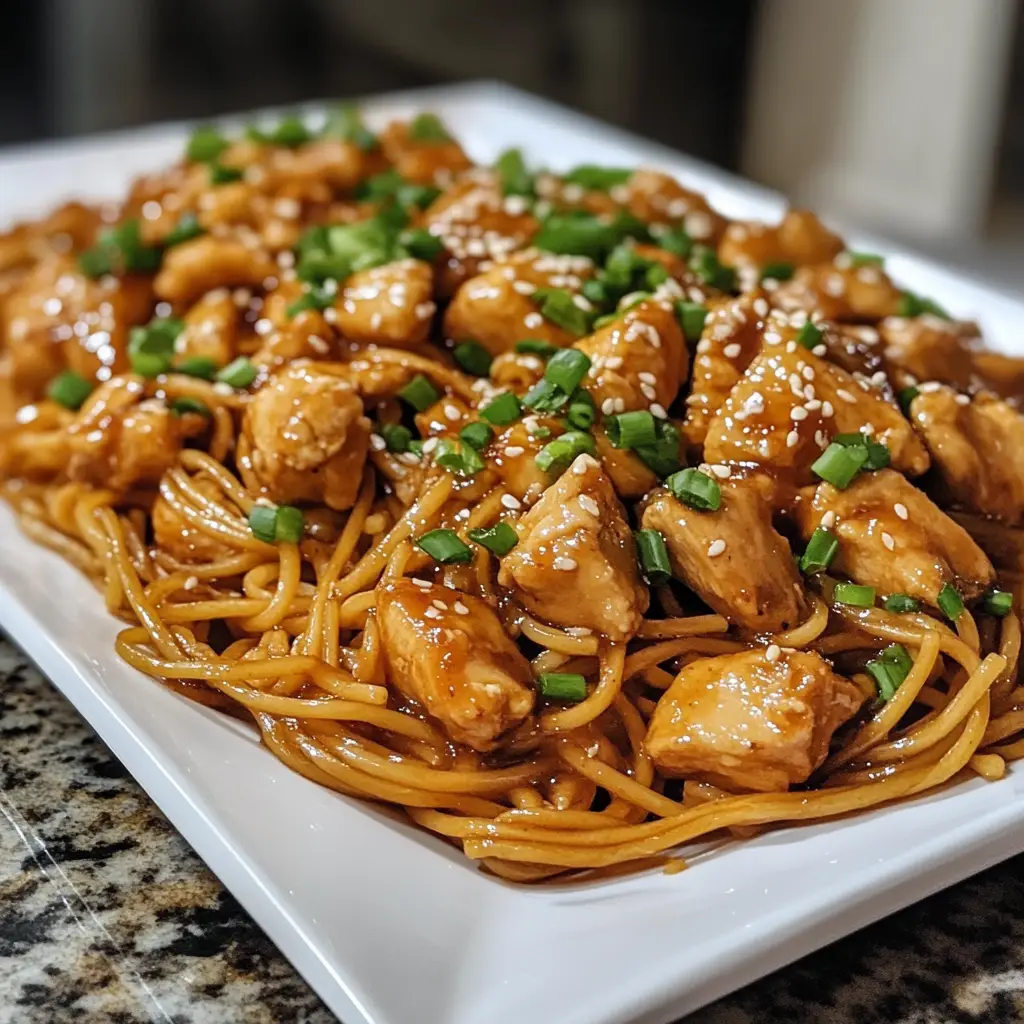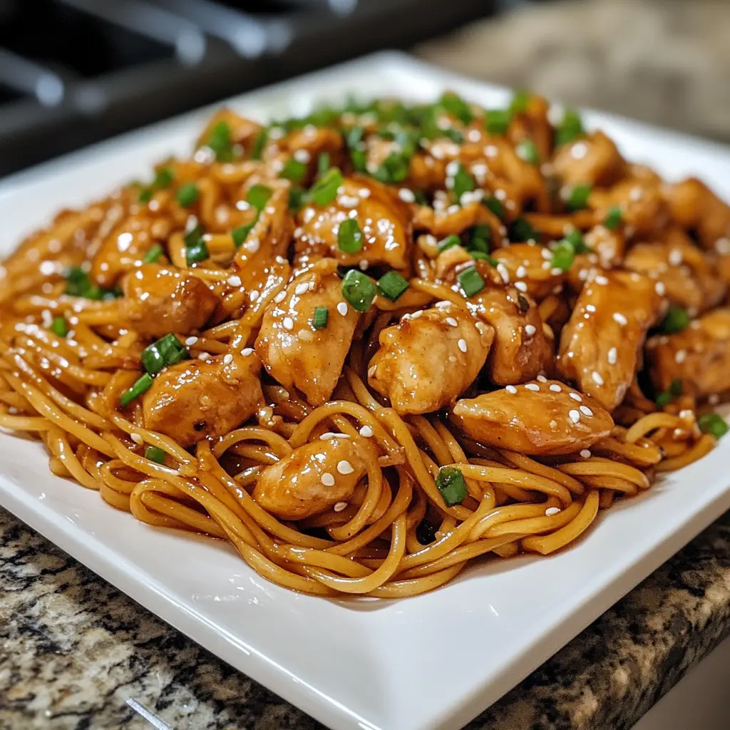 PrintSticky Garlic Chicken Noodles: A Flavorful Delight Awaits!