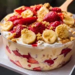 Strawberry Banana Pudding is a dessert that embodies comfort and joy in every spoonful. The balance of flavors is extraordinary—the sweetness of strawberries, the soft creaminess of bananas, and the rich, velvety vanilla pudding create a symphony that dances on your palate. Beyond its delectability, this pudding stands out as a versatile crowd-pleaser suitable for any occasion, whether it’s a summer gathering, celebratory barbecue, or simply a comforting treat after a long day.
