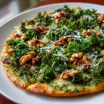 A delicious and healthy twist on traditional pizza, featuring a vibrant kale pesto as the base.