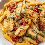 Every bite of this lavish meal transports you to an intimate trattoria, where family recipes have been passed down through generations. The lush creaminess blends beautifully with the tangy sweetness of sun-dried tomatoes and the indulgent notes of Parmesan cheese. It’s a delightful contrast – the tender chicken, the silky sauce, and the hearty pasta come together to create a symphony of textures that make it hard to resist reaching for just one more forkful. Whether it’s a cozy weeknight dinner or an elegant gathering with friends, this dish captivates and enchants, ensuring everyone at the table feels loved and nourished.